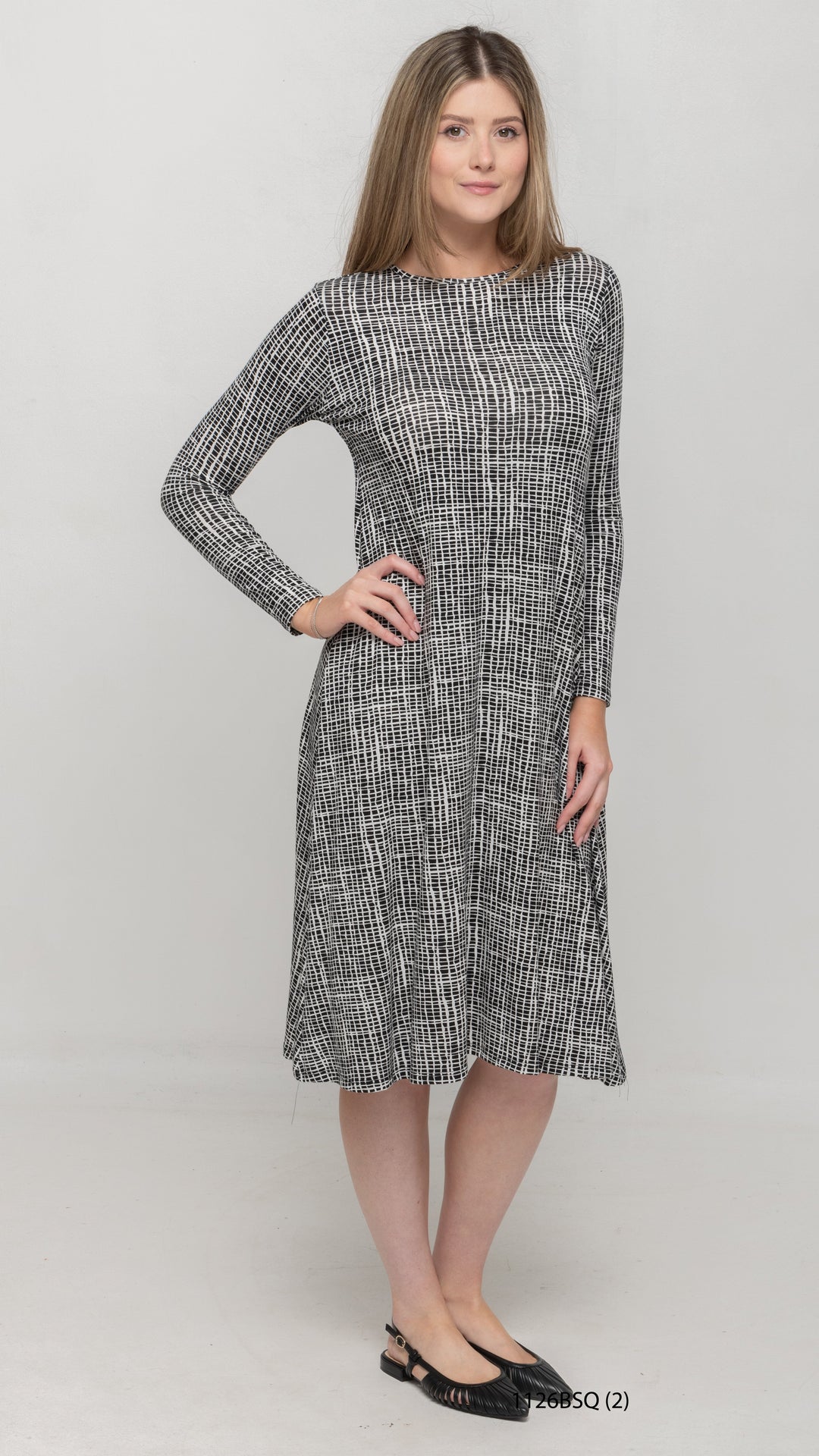 A-Line Long Sleeve Dress - Silver/Black Crinkle