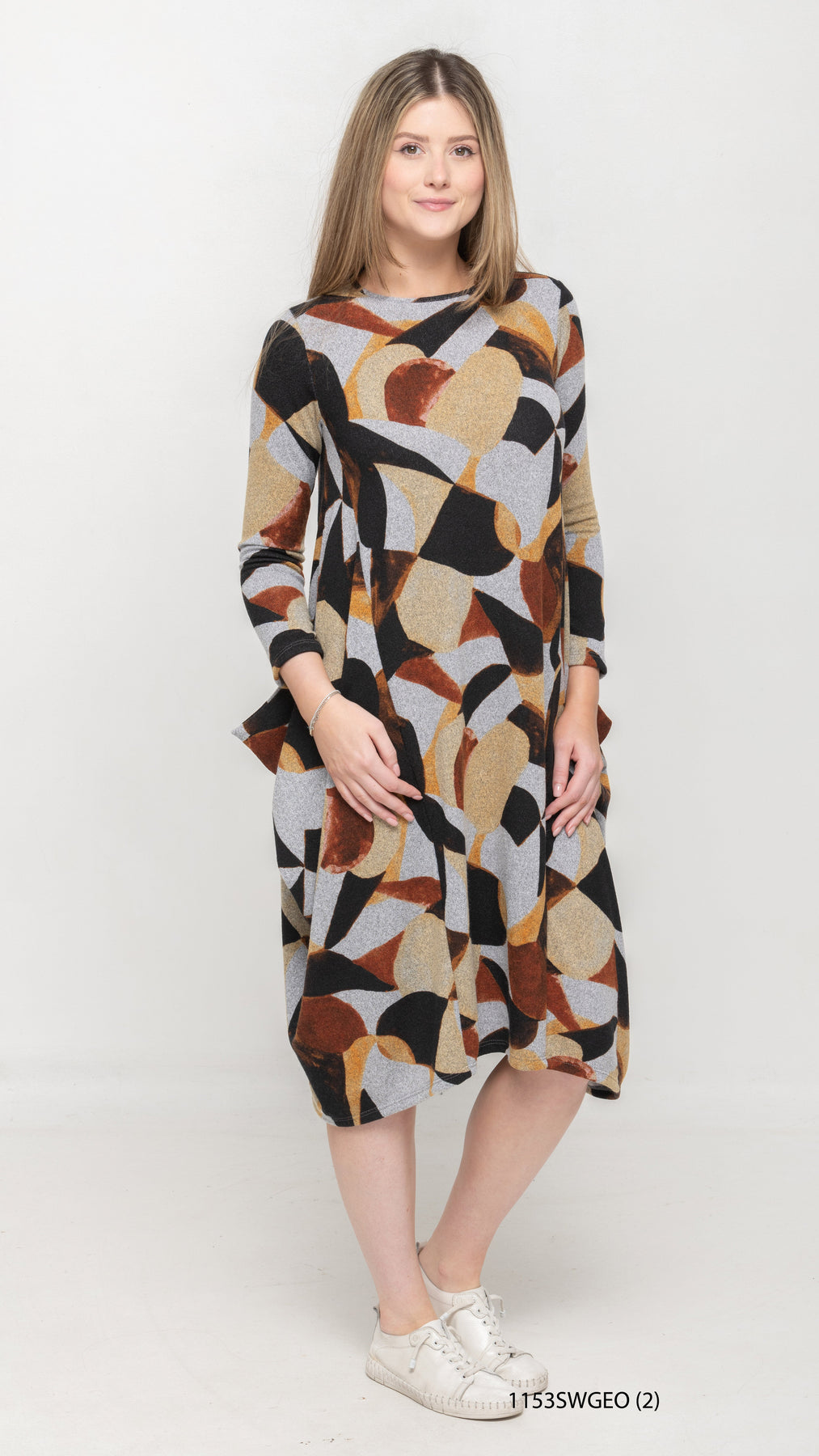 Boho Sweater Knit Dress - Taupe Geo